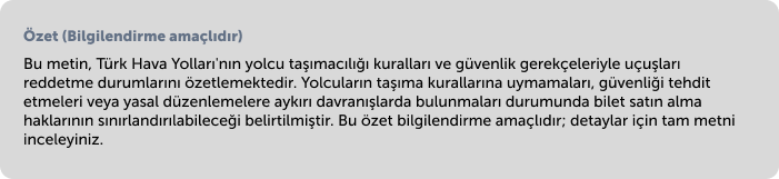 In summary, if you are writing for Turkish Airlines, you can include a summary for better user experience, provided it does not change the full text and is approved by legal teams in the respective country or region.
