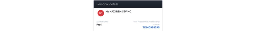 Miles & Smiles membership numbers start with TK, are 9 digits, and are written together without a space.