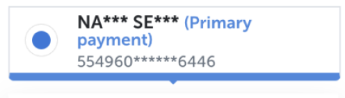 b. For credit cards, the first six digits and the last four digits are written. The remaining characters are replaced with asterisks.