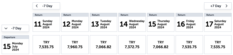 When our users select a flight, we also show alternative flights within their chosen date range. Of course, the price of each flight is not the same. We follow a similar logic for price and miles changes. When there is a price change: